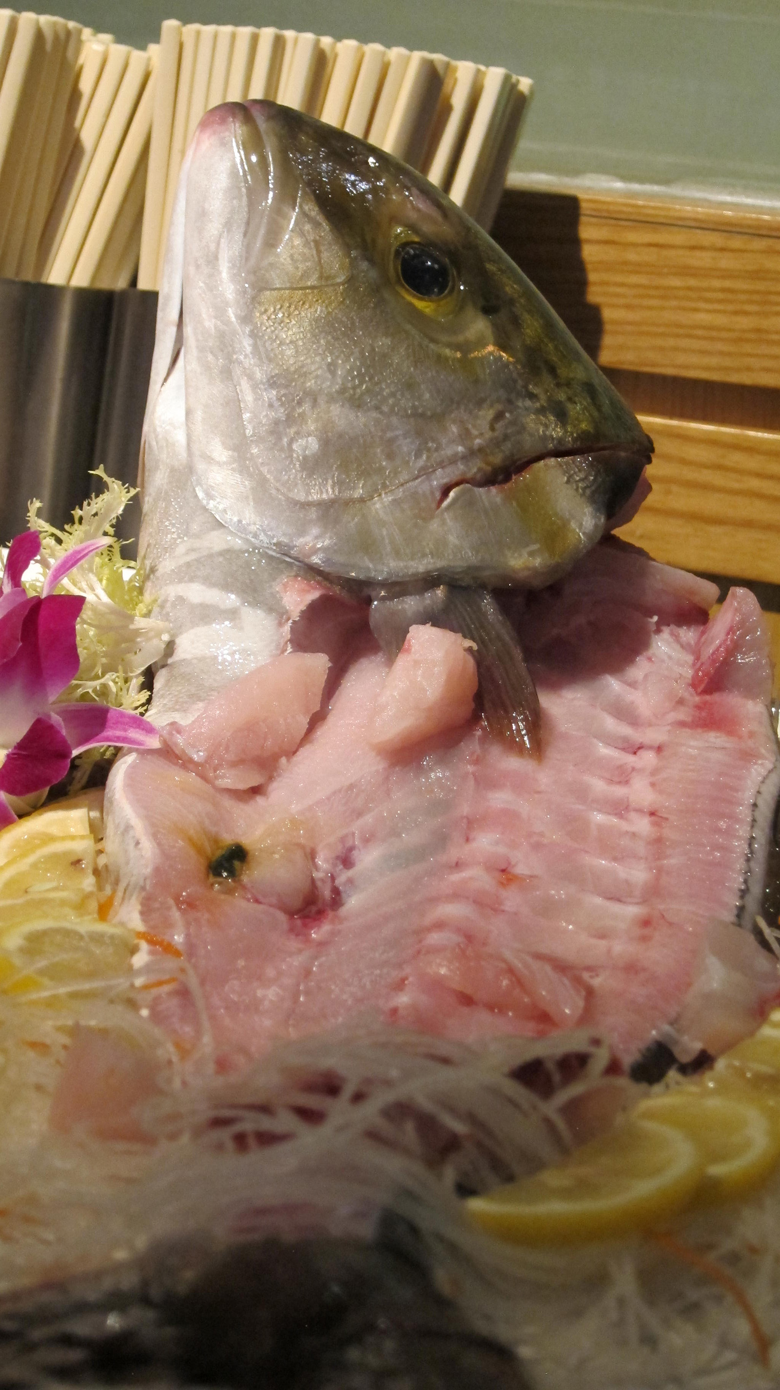 We at lunch one day at The Pond restaurant. I had the Sichuan chicken. It was extra spicy. I think I ate some snot as well.