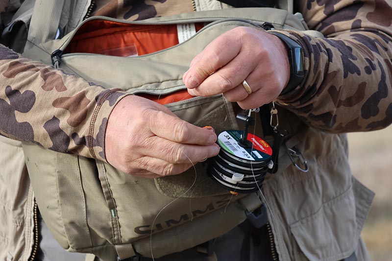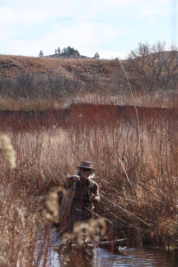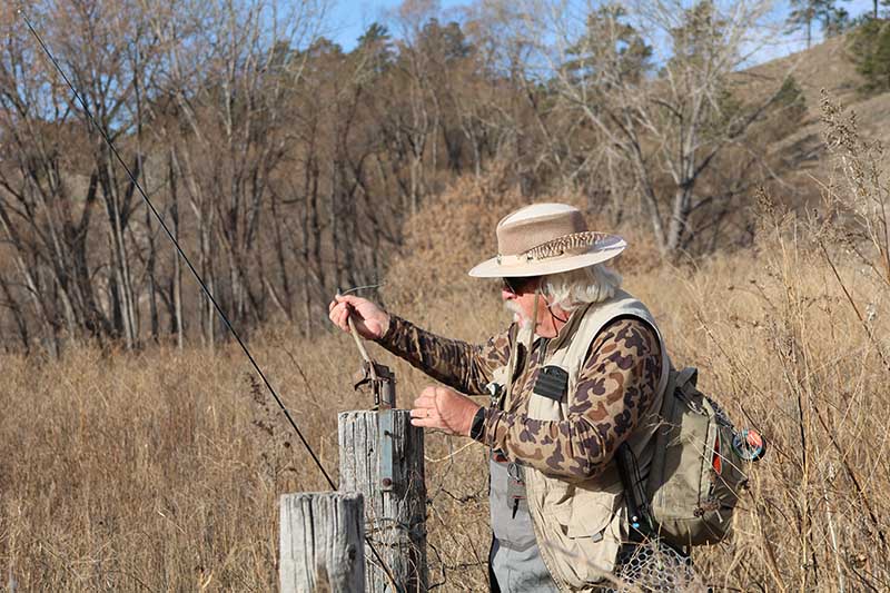 Steve prepares his line before wading off into the White River to do some flyfishing. The White River is a Missouri River tributary that flows 580 miles (930 km) through Nebraska and South Dakota.