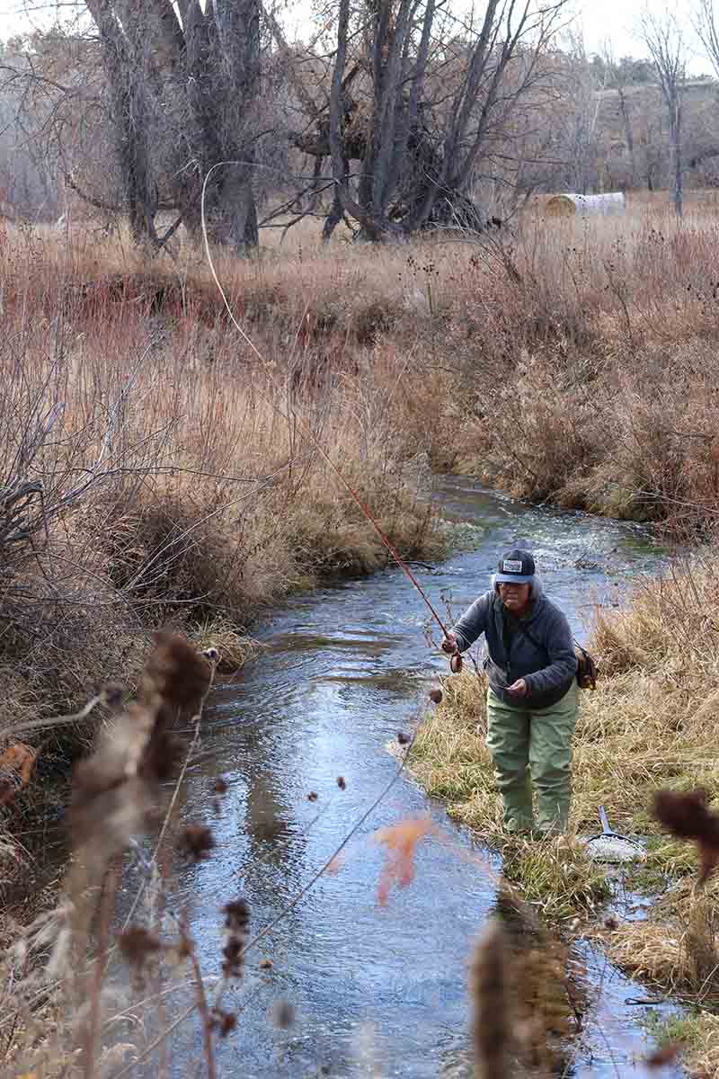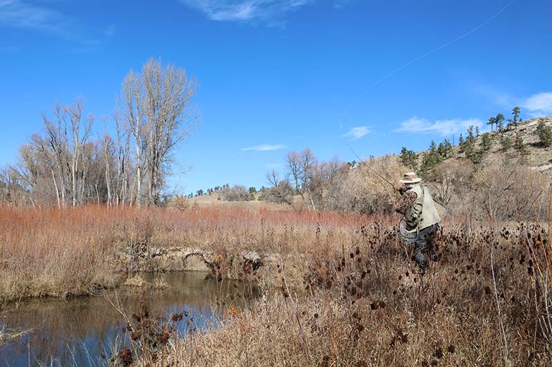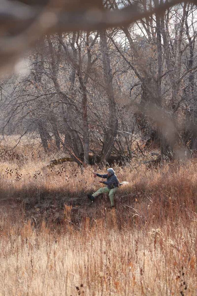 Steve casts his line along the White River. The river sometimes has no surface flow due to the dry climate surrounding its badlands and prairie basin, though thunderstorms can cause brief intense flow.