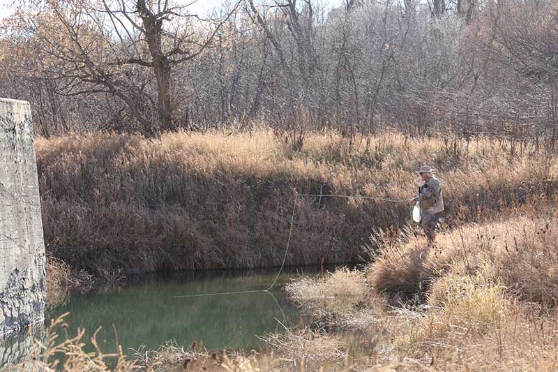 Sandra slings her line toward a nook where some fish are hiding along the White River in Sioux County, Nebraska. The White River rises in northwestern Nebraska, in the Pine Ridge escarpment north of Harrison, at an elevation of 4,861 feet (1,482 m) above sea level.