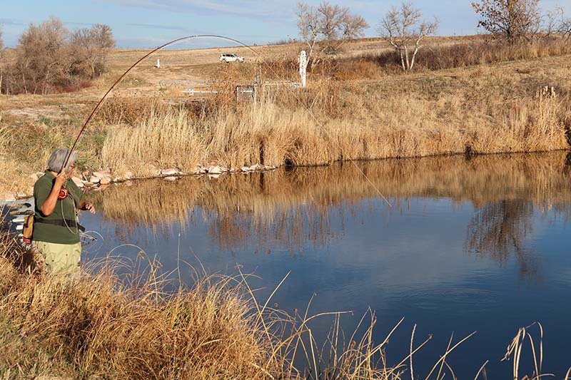 Steve caught a 20 1/4″ rainbow trout at the Cherry Creek Ponds at Fort Robinson. Because today was a catch-and-release day, this guy went back into the water.