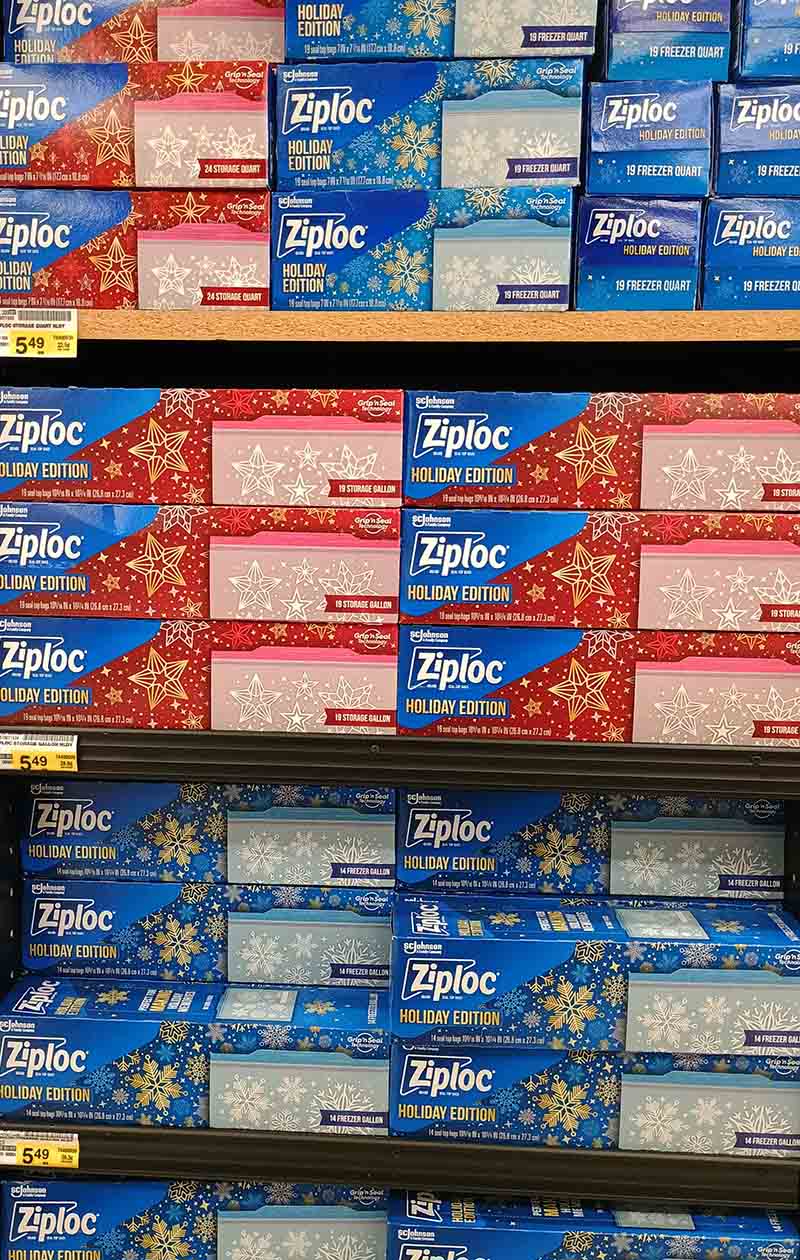 The breads Mom made for her Christmas packages had to go into decorative Ziploc bags. These were available for Christmas 2024.