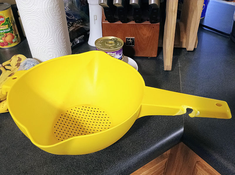 Mom gave me her spare Tupperware colander after I got my first apartment. I had it for years before Paul put it in the dishwasher and it fell onto to the heating element and melted part of the handle. It still works though.